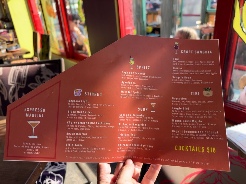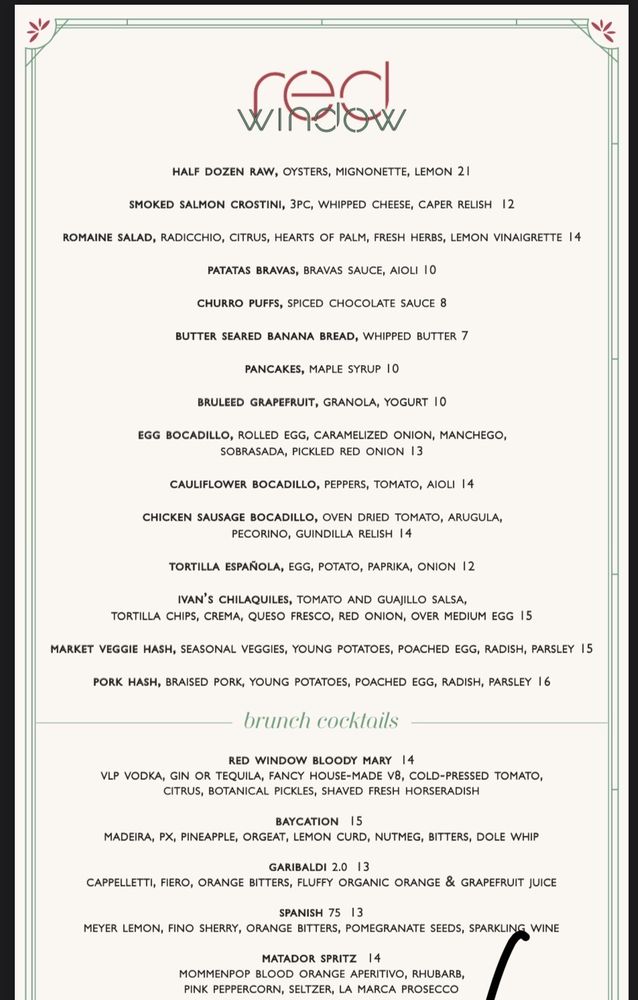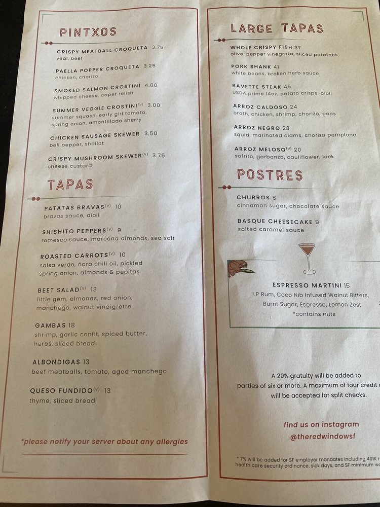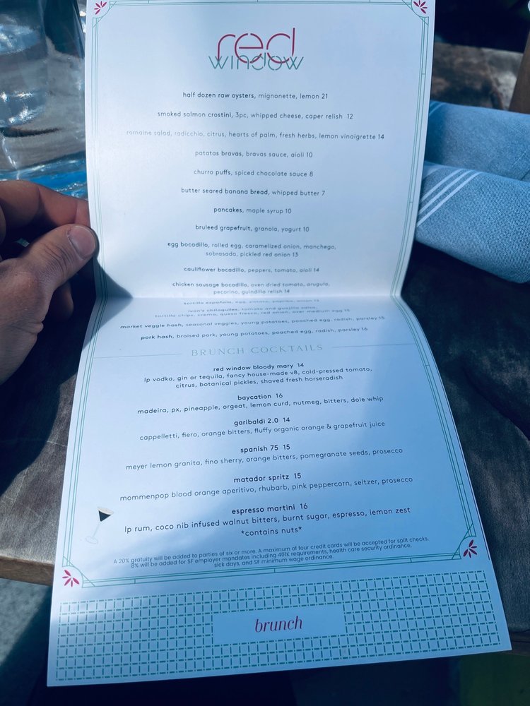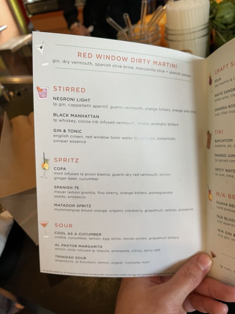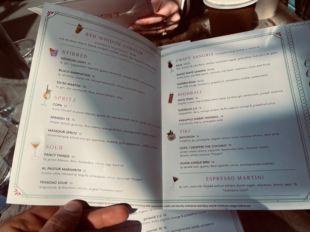 Red Window is a trendy cocktail bar in San Francisco, offering a unique dining experience with Asian and Latinx owned influences. The menu features dishes like crispy Patatas Bravas, flavorful short ribs, and juicy fried chicken sandwiches. Customers rave about the festive holiday drinks and the must-try patatas bravas, praising the cozy and chill ambiance. The outdoor seating, live music, and quick service make it a perfect spot for date nights or gatherings with friends. Their extensive drink menu includes options like Mexican Coke, Saratoga Sparkling Water, and Golden State Cider. With a vibrant atmosphere and delicious food, Red Window is a must-visit spot in the city for a memorable dining experience.
